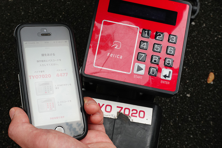 自転車を選んでから、後方に設置された操作パネルに暗証番号を入力するとロックが解除されます。