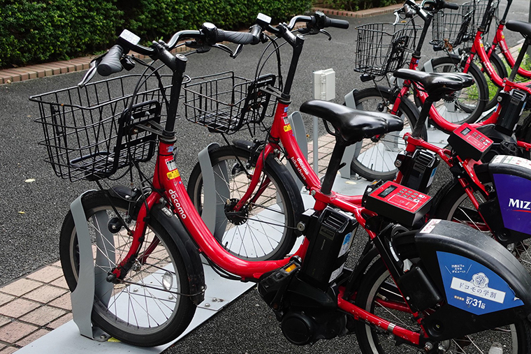 今回はルートが広範囲に渡り、基本的に電車を利用しつつ、駅近くのサイクルポートで自転車をピックアップして、また電車に乗って・・・を繰り返すため、レンタルサイクルよりもシェアサイクルのほうが便利だと考えました。国内にもいくつかシェアサイクルがありますが、今回はその中でもっともサイクルポートの数が多い「ドコモ・バイクシェア」を利用して五色不動を巡ります。この自転車は電動アシスト付きのため、坂道が多い都内でも楽に移動することができます。
